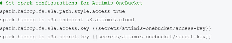 This configuration is set once at the cluster level. After this, all data sources behind Attimis OneBucket are automatically available to every notebook and job on the cluster.